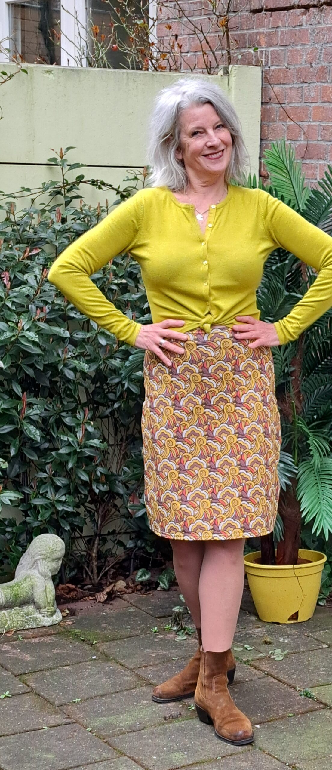 Ik maak verschillende soorten rokken. Maar de bananenrok is het leukst om te maken, omdat ik dan vaak verschillende stoffen combineer. Het is heerlijk om op zoek te gaan naar de best passende stofjes.